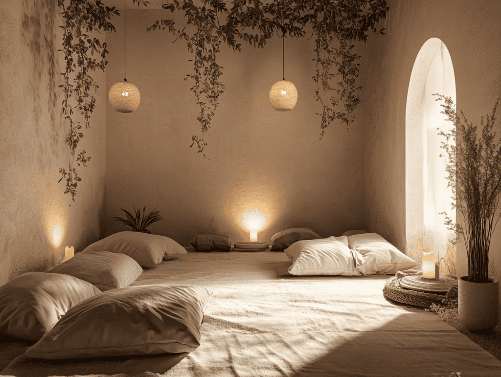 1. Create a Sacred Space: Designate a quiet and comfortable area in your home for meditation. This can be enhanced with soft lighting, cushions, or calming decor.